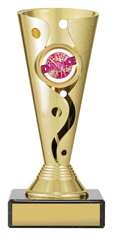 Carnival cups present a distinctive cup style trophy with attractive 3D design - on classic black marble base for your engraving - with brightly coloured insert for your sport. Trophies adaptable to your custom requirements.
