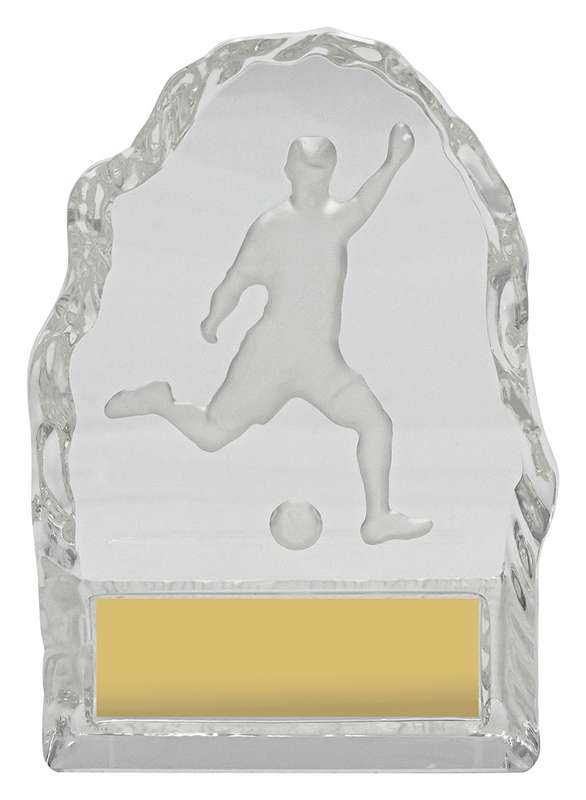 Affordable crystal iceberg award design features a detailed football player. A versatile trophy suitable for a range of soccer events & presentation. Space for your engraving and available in a presentation gift box.