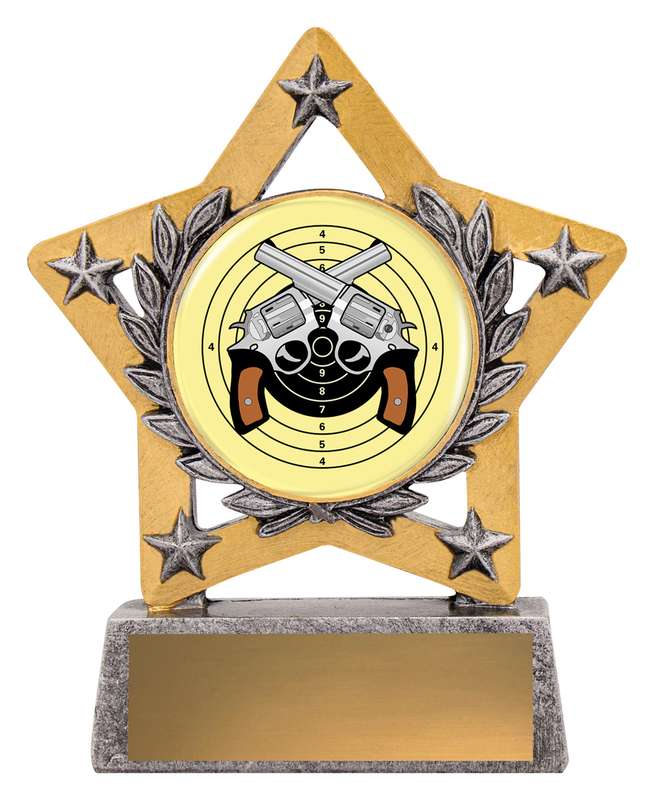 Star inspired design with traditional gold and silver colours - showcase brilliant colour image for your sport or activity. Mini stars offer great value.