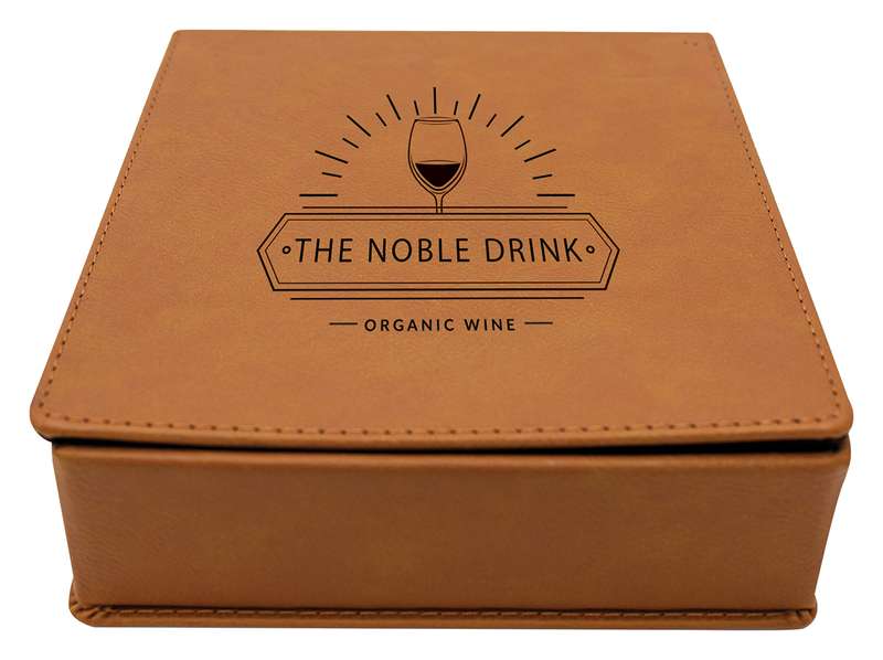 Gift Set includes premium bottle opener and stopper with rawhide leatherette cover for your engraving requirements.