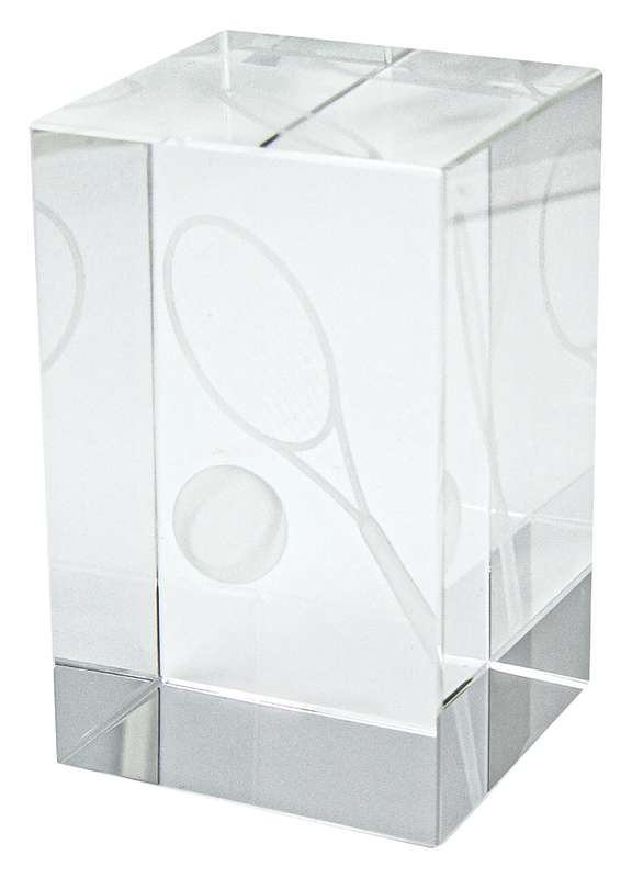 Hologram award for Tennis features 3D theme design with tennis elements - ball, racquet & net. A trusted option for various tennis events and presentations, a prestige crystal block supplied in a presentation gift box.